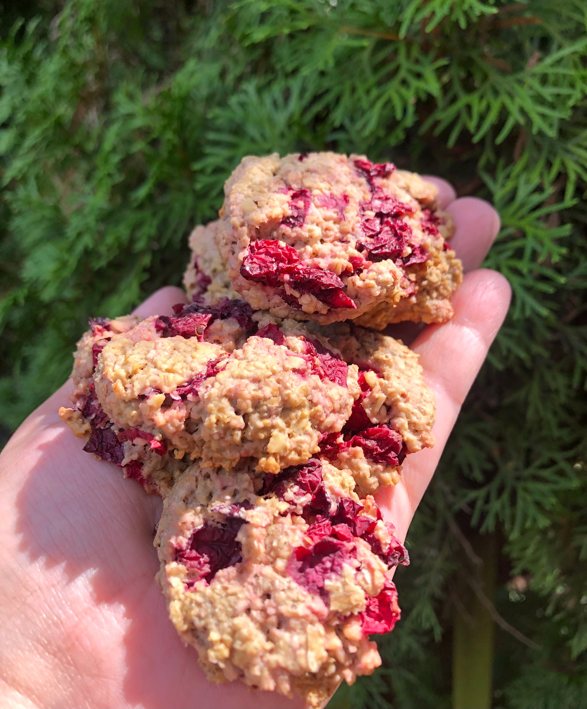 Crunchy Cranberry Cookies: Organic Cranberries, Organic Applesauce, Organic Oats, Organic Pasture-Raised Eggs, Organic Coconut Oil, Baking Soda.