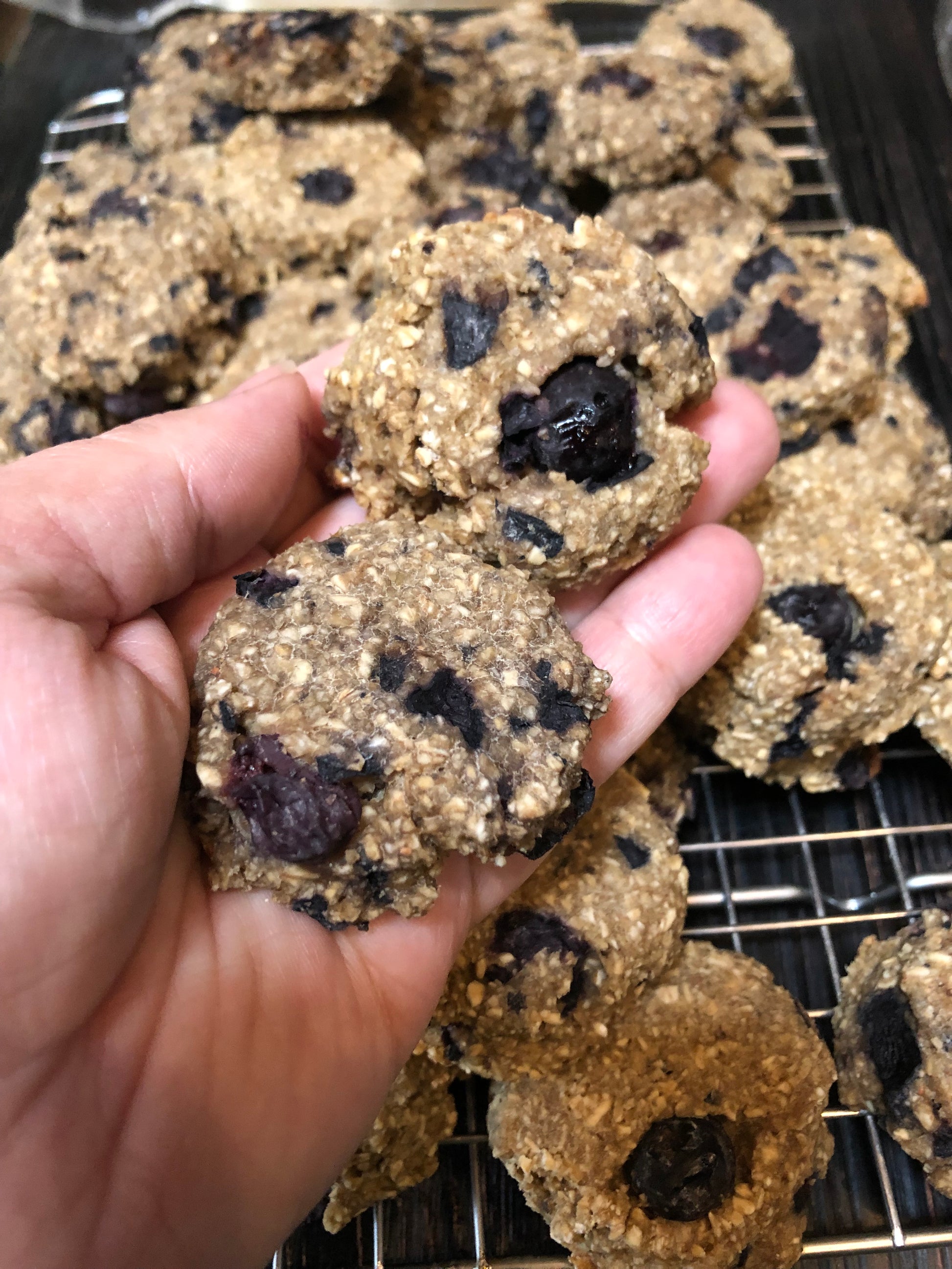 Ingredients: Organic Oats, Organic Blueberries, Organic Applesauce, Organic pasture-raised eggs, Organic Coconut Oil, Baking Soda.