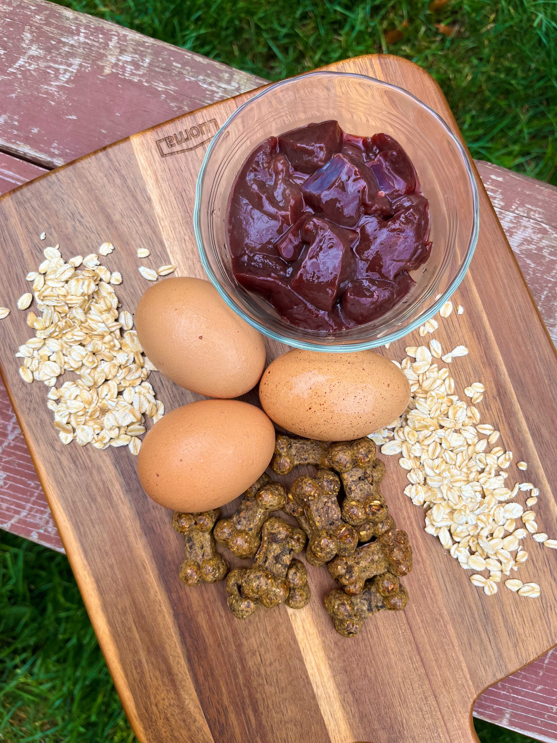 Ingredients: Grass-fed Beef Liver, Organic Oats, Organic Pasture-Raised Eggs.