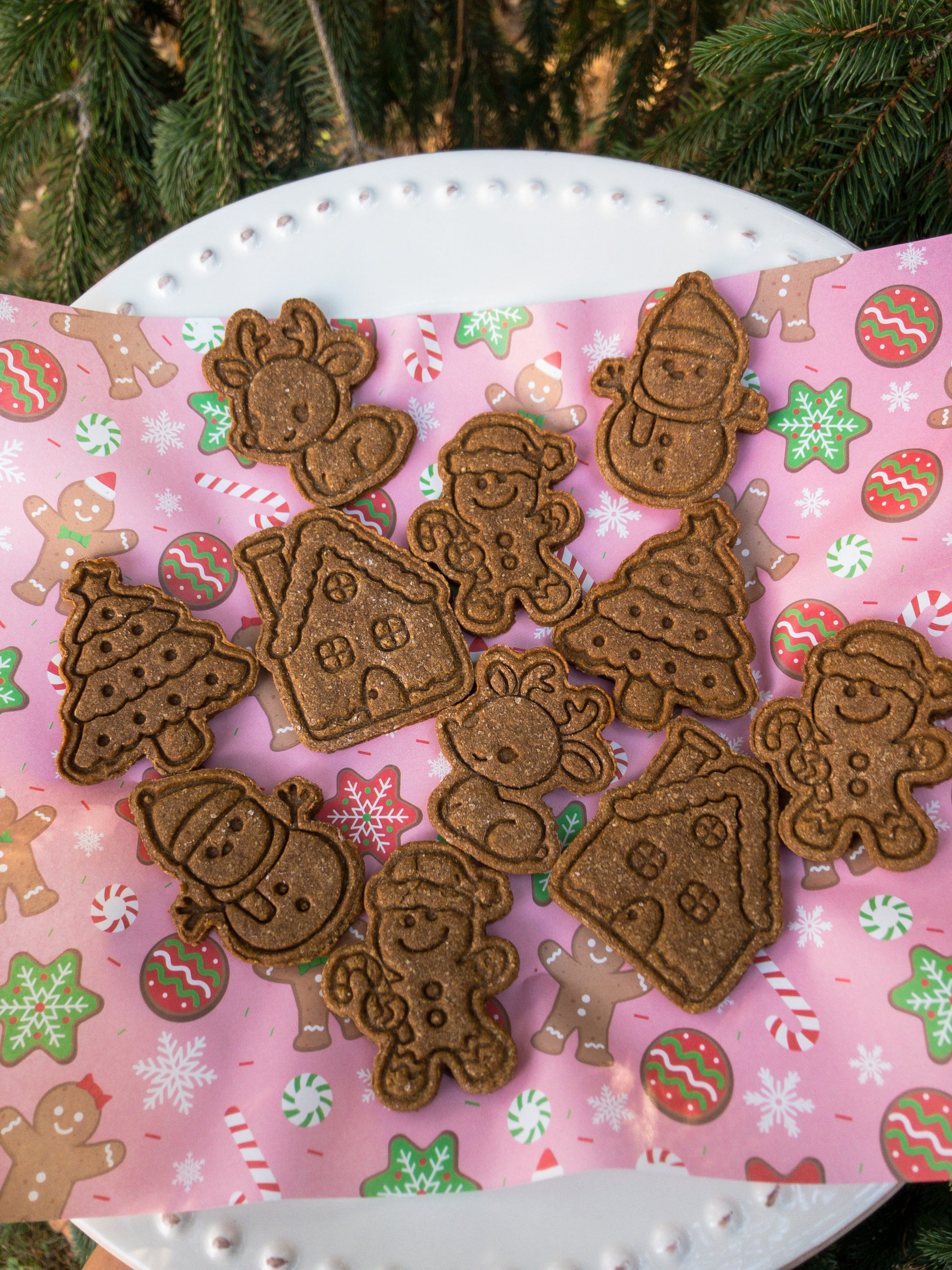 Treat your pup to the flavors of the season with our holiday Cookies! Made with a delicious gingerbread recipe and stamped with adorable designs, these treats are sure to please.